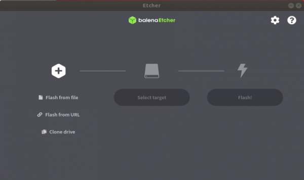 6)If you download a version of balenaEtcher that needs to be installed, please install it before using it. If you download the Portable version of balenaEtcher, just double-click to open it. The opened balenaEtcher interface is shown in the figure below.